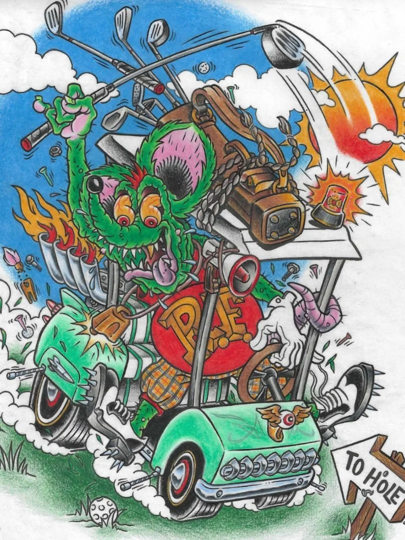 If you’d like to thumb your nose at country club culture, try this nod to Golf Finx’s Hot Rod Kulture. Bolt on your Golf Finx modifications, get your driver striped, your score lowered and louvered, then bring a bad round back from the dead in kustom Golf Finx fashion.